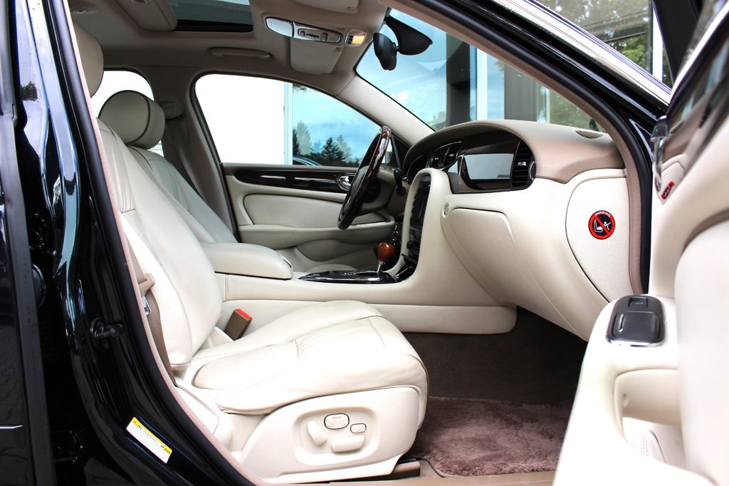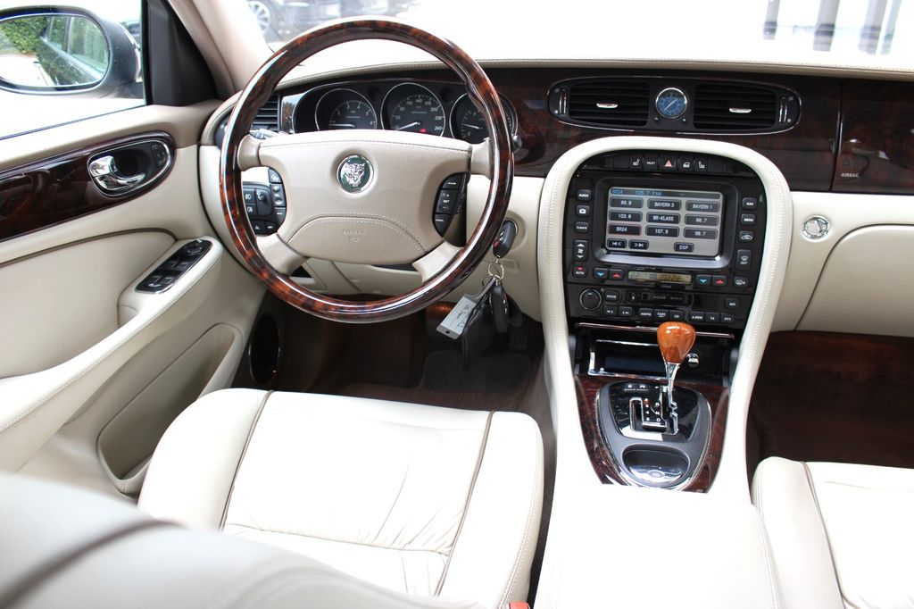 Airbag Fahrer-/Beifahrerseite, Audio-DVD-Navigationssystem mit Touchscreen-Farbdisplay, Audiosystem Jaguar (Radio/CD-Player), Bremsanlage: Brembo, Bremsassistent, CD-Wechsler, Computer-Activ-Technic-Suspension (CATS), Elektron. Traktionskontrolle, Fensterheber elektrisch vorn + hinten, Heckscheibe heizbar, Innenausstattung: Classic, Innenspiegel mit Abblendautomatik, Karosserie: 4-türig, Klimaautomatik 2-Zonen, Kopf-Airbag-System (Windowbag), Kopfstütze hinten mitte, Lendenwirbelstütze Sitz vorn links und rechts, elektr. verstellbar, Lenkrad mit Multifunktion, Lenksäule (Lenkrad) elektr. verstellbar, LM-Felgen, Memory-Paket, Mittelarmlehne hinten mit Getränkehalter, Motor 4,2 Ltr. - 291 kW V8 32V KAT, Park-Distance-Control (PDC) vorn und hinten, Reserverad als Notrad, Seitenairbag vorn, Sitzheizung vorn, Sonnenschutzrollo an Heckscheibe, Sound-System Alpine Premium, Sprachsteuerung Radio + Telefon, Telefonsystem integriert, Verglasung getönt