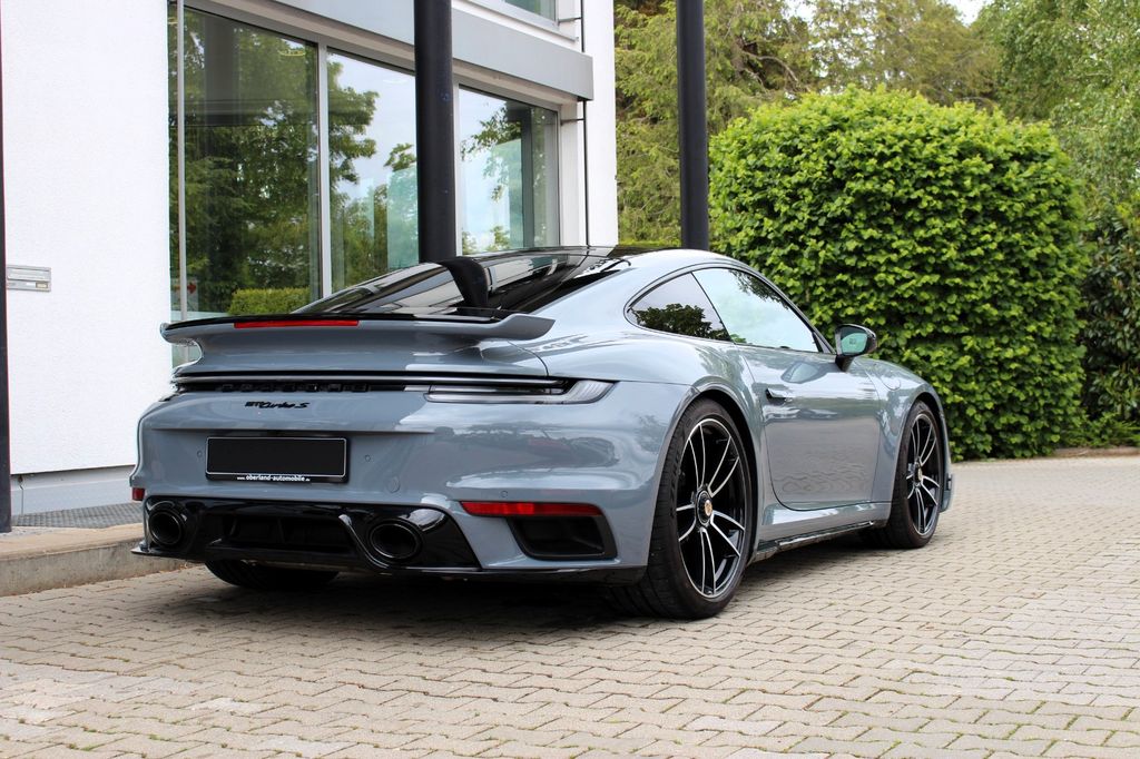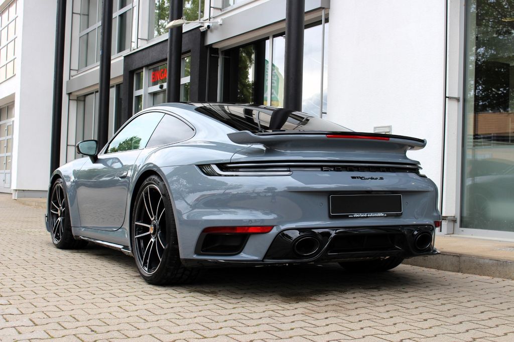 Ablage-Paket, Aero-Kit Turbo schwarz lackiert (Hochglanz), Außenspiegel Oberschale Carbon, Fahrassistenz-System: Park-Assistent vorn und hinten inkl. Rückfahrkamera und Surround View, Fahrassistenz-System: Porsche InnoDrive inkl. Abstandsregeltempomat, Fahrassistenz-System: Spurwechselassistent, Fensterzierleisten schwarz (Hochglanz), Frontscheibe mit Bandfilter oben, Fzg. ohne Modellbezeichnung, Heckleuchten Exclusiv Design, Innenraumlicht-Paket / Licht-Design-Paket, Interieur-Zusatzpaket: Schalttafel und Türtafel Leder, Komfortzugang (Schlüssellose Türentriegelung), Leder-Paket 930, Lenksäulenverkleidung Leder, Liftsystem Vorderachse, LM-Felgen vorn/hinten: 9x20 / 11,5x21 (911 Turbo S Rad), Lufteinlassblende Seitenwand lackiert, Matrix-LED-Scheinwerfer, abgedunkelt, inkl. Porsche Dynamic Light System Plus (PDLS+), Reifen-Reparaturkit, Schiebedach elektrisch (Glas), Schriftzug Porsche lackiert, Servolenkung Plus (geschwindigkeitsabhängig), Sitzbelüftung vorn, Sound-System Burmester High-End Surround, Sport-Auspuffanlage, Endrohre schwarz, Sport-Fahrwerk (PASM) elektronisch gesteuert, Tankdeckel Exclusive Design, Verglasung hinten abgedunkelt (Privacyverglasung)